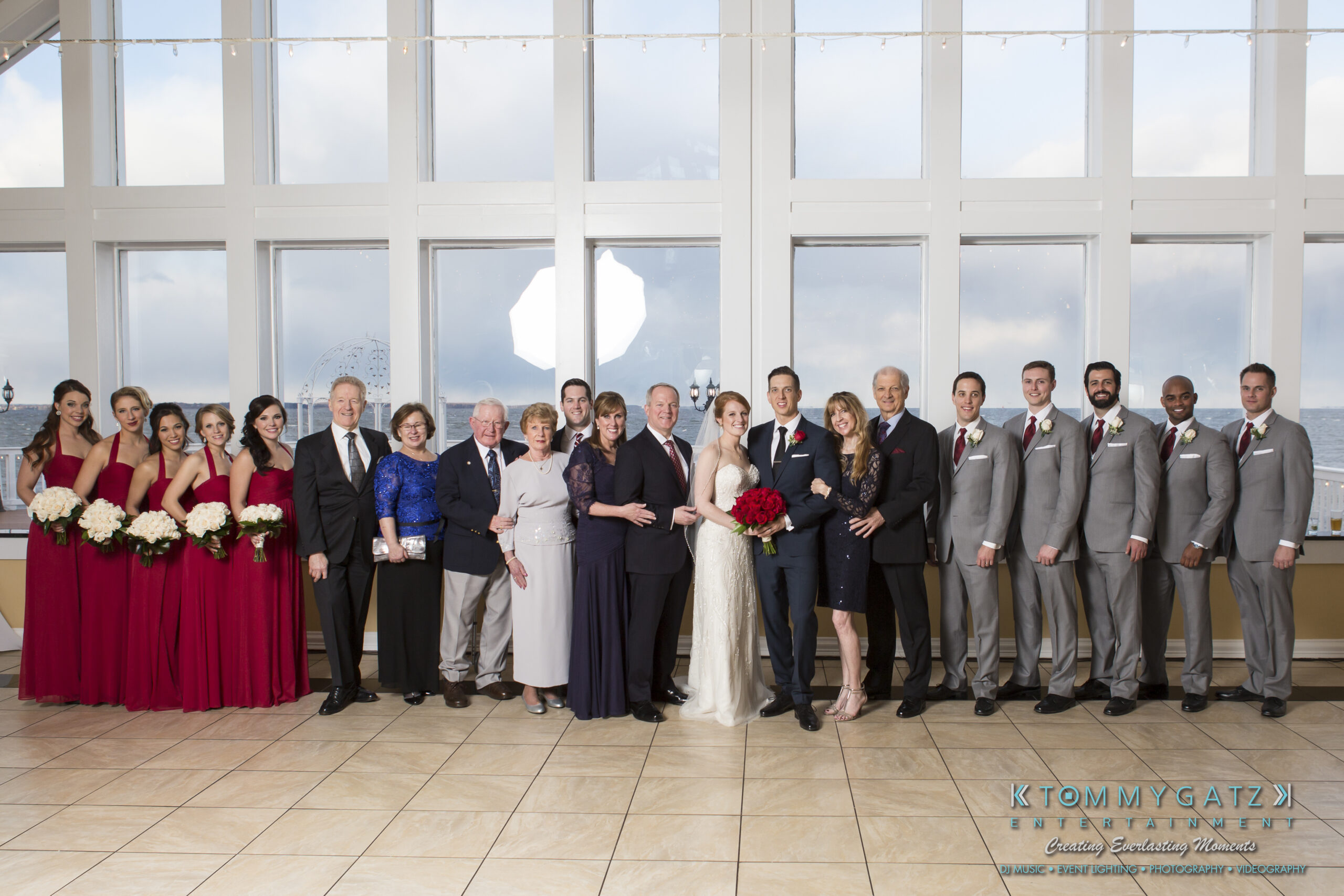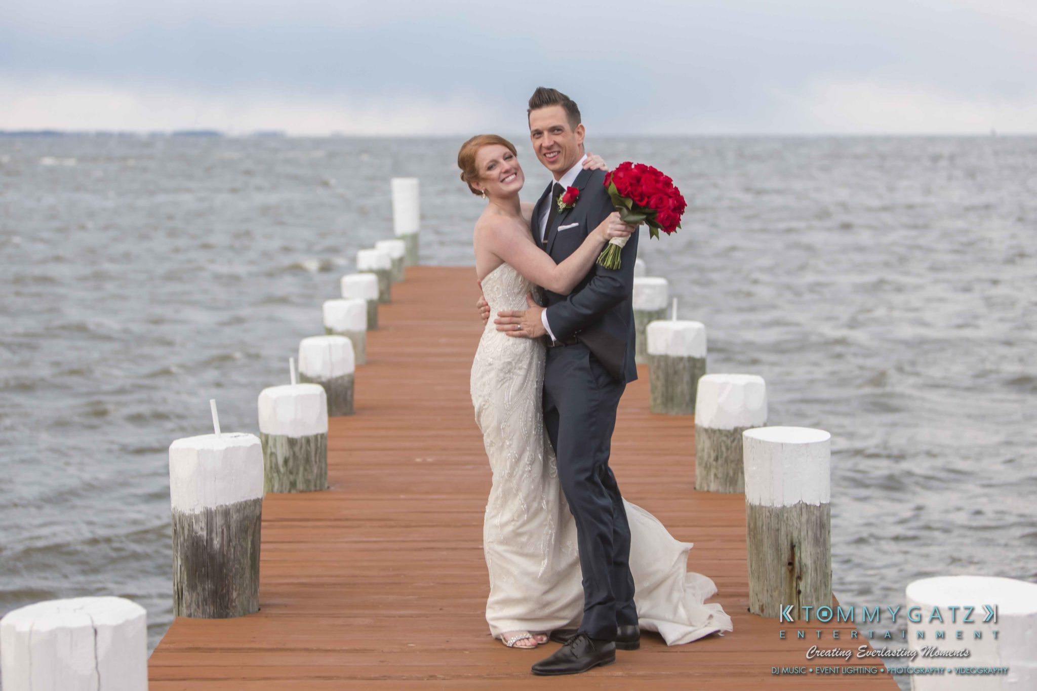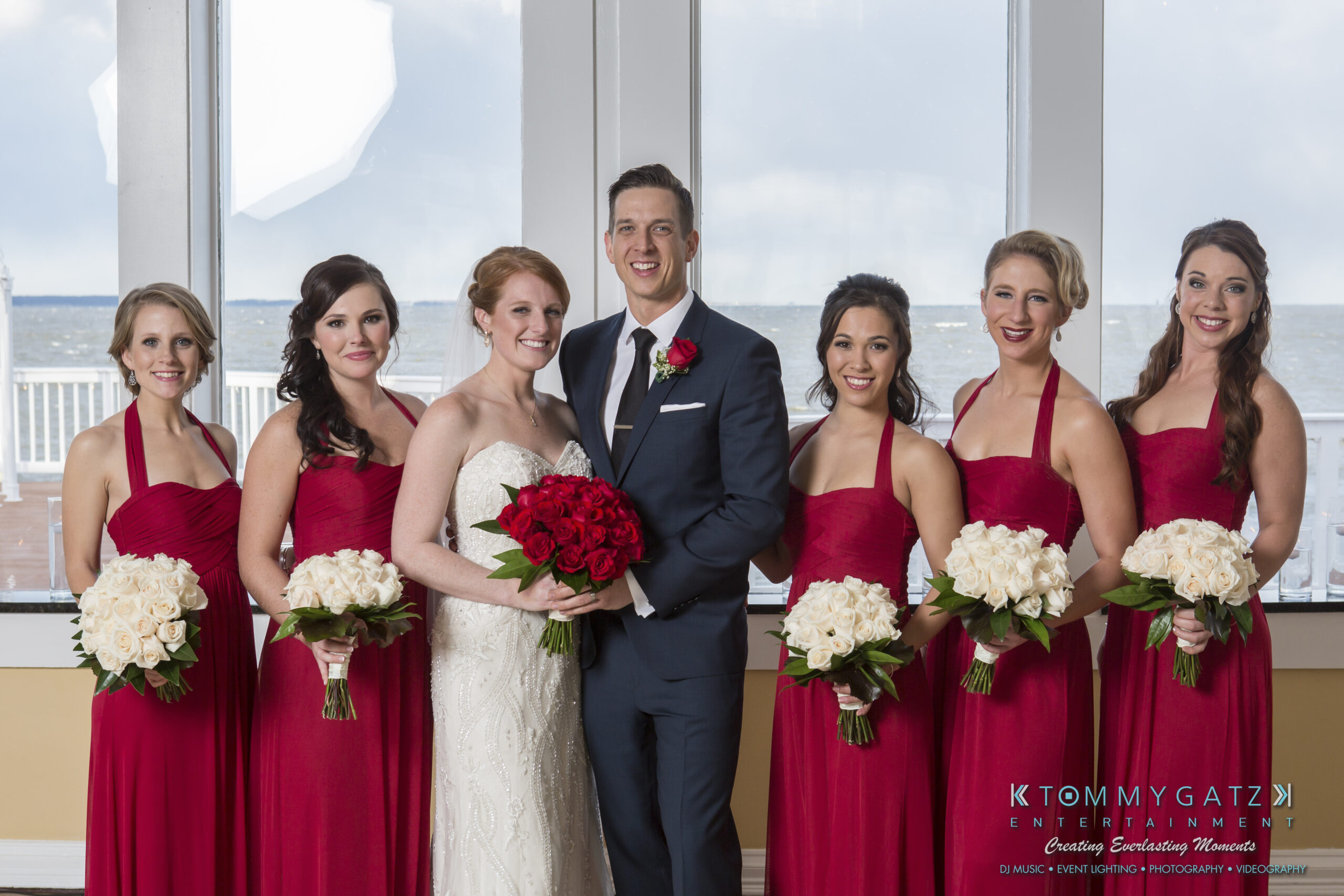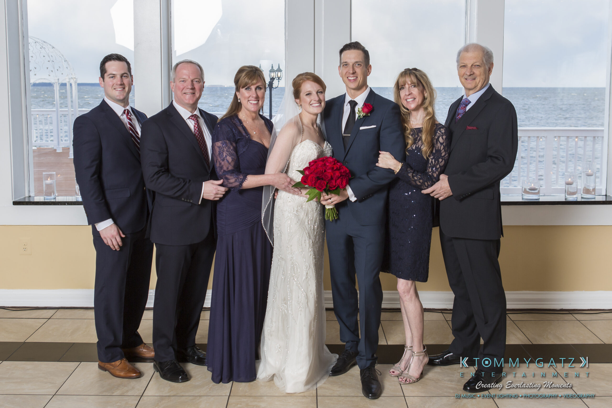 Erika and Michael had a beautiful Valentine’s Day weekend wedding. The Navy helicopter pilot bride and Naval officer groom returned home to Maryland from the west coast to hold their wedding at Celebrations at the Bay. On one of the coldest days of the year, this couple braved the elements to create one of the most memorable weddings we have ever been a part of. Tommy Gatz Entertainment provided the DJ music, lighting, professional photography, photo booth, cinematography, and day of coordination for their amazingly romantic wedding on the water.