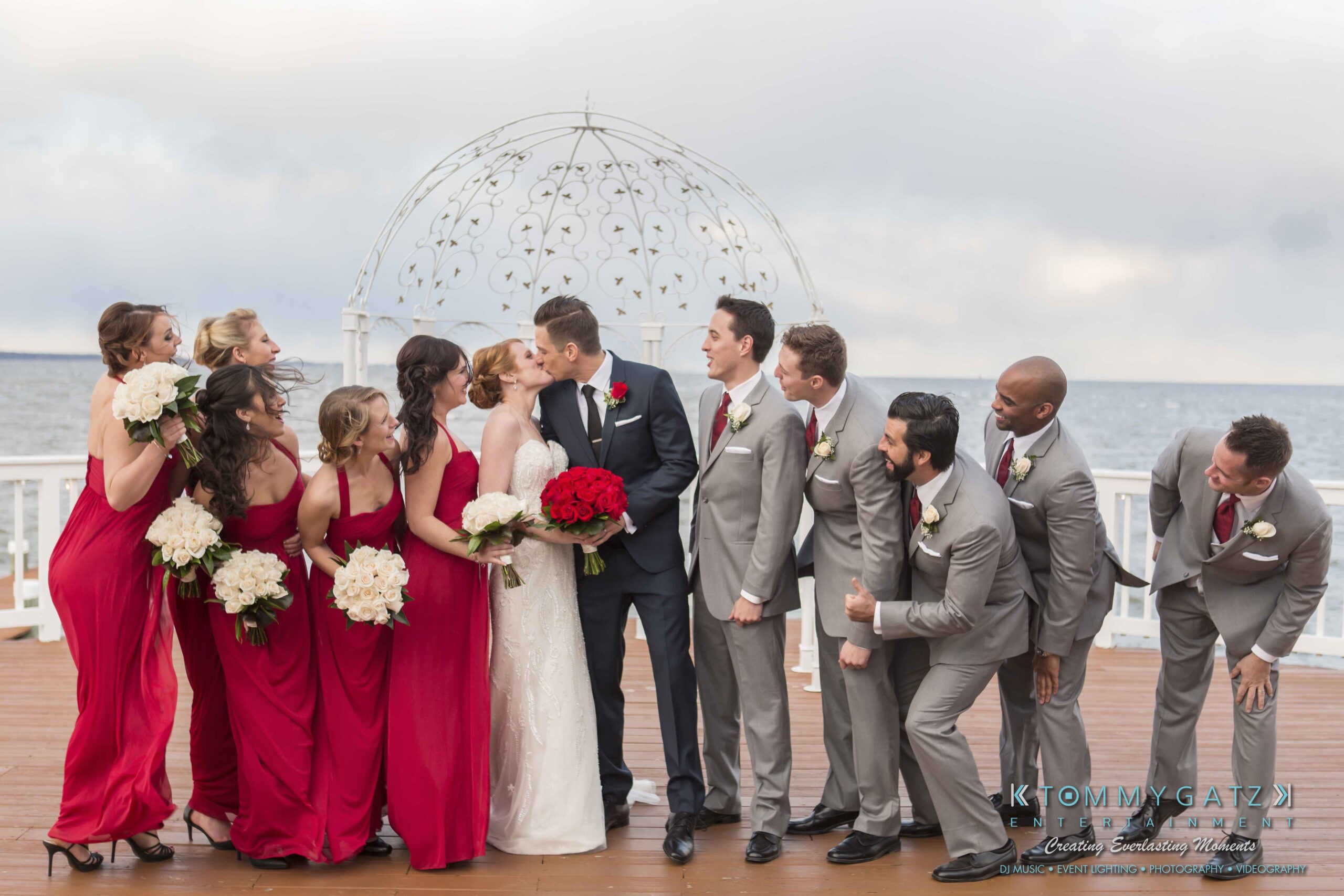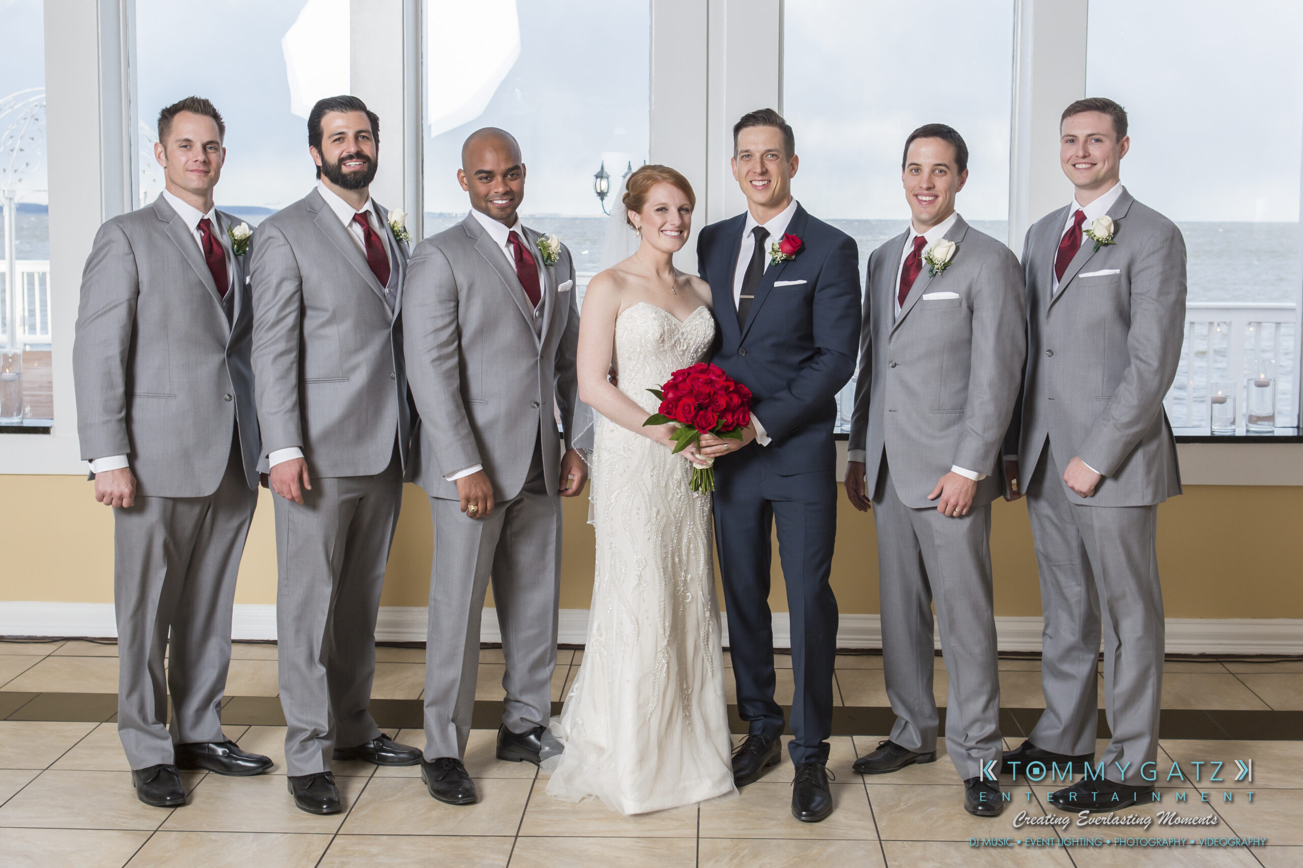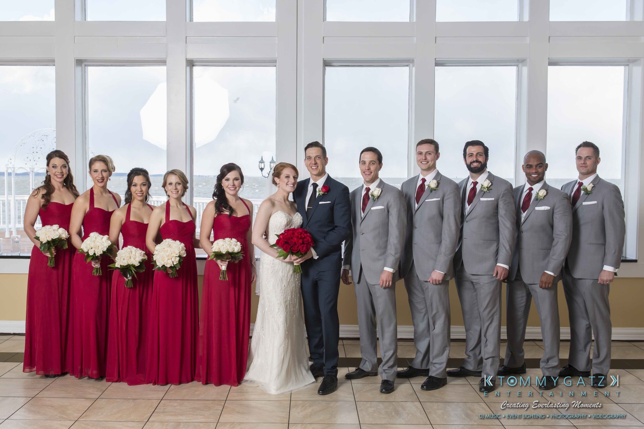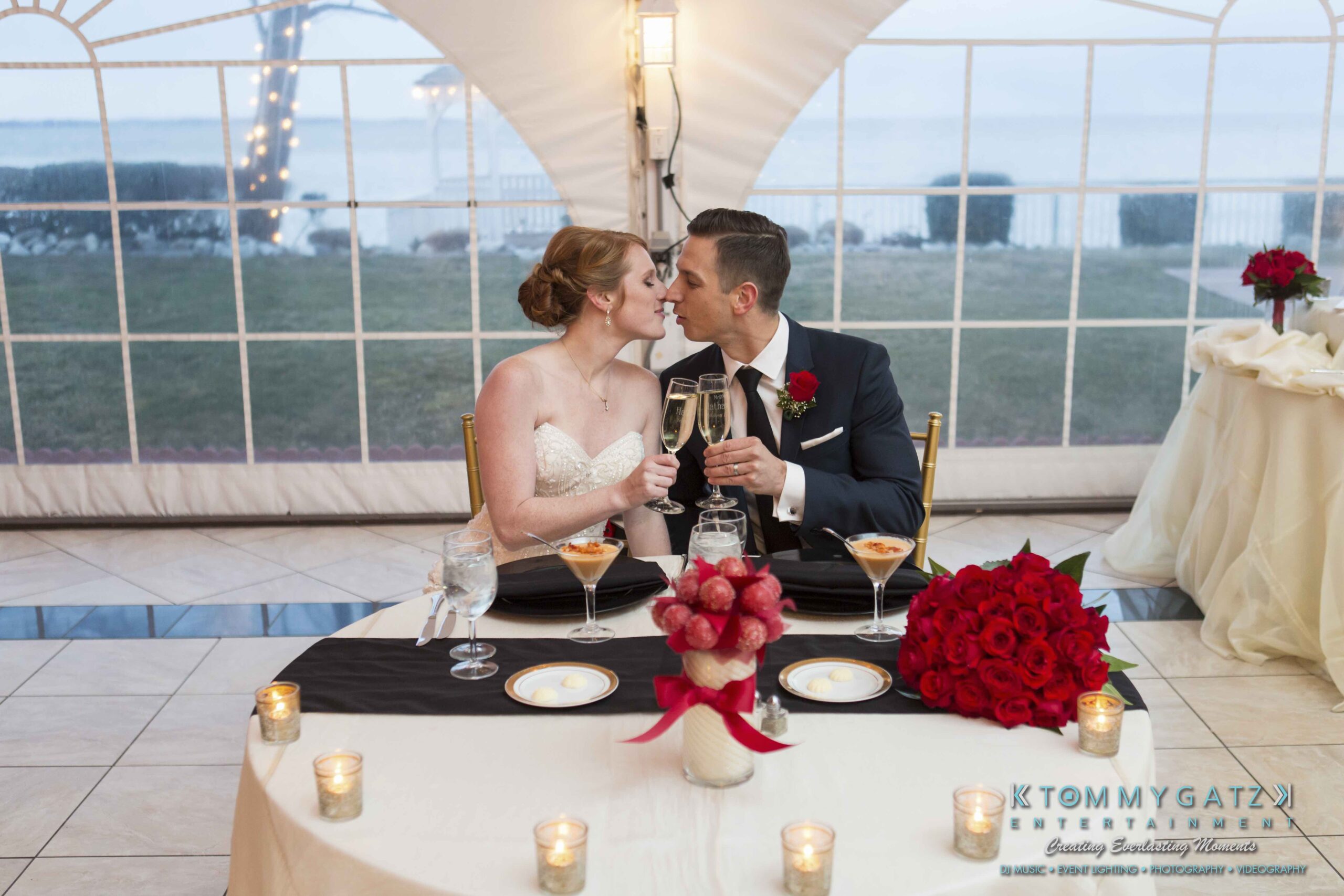Erika and Michael had a beautiful Valentine’s Day weekend wedding. The Navy helicopter pilot bride and Naval officer groom returned home to Maryland from the west coast to hold their wedding at Celebrations at the Bay. On one of the coldest days of the year, this couple braved the elements to create one of the most memorable weddings we have ever been a part of. Tommy Gatz Entertainment provided the DJ music, lighting, professional photography, photo booth, cinematography, and day of coordination for their amazingly romantic wedding on the water.