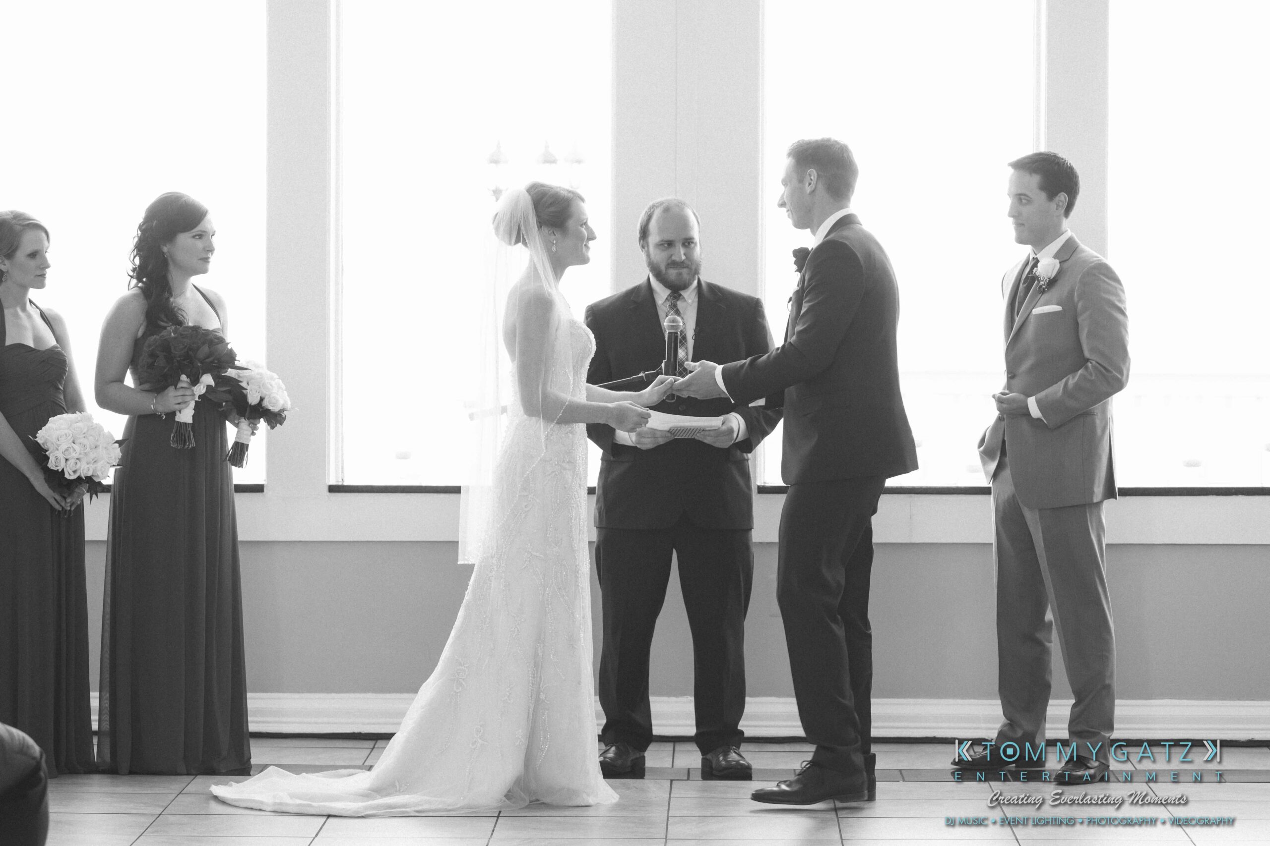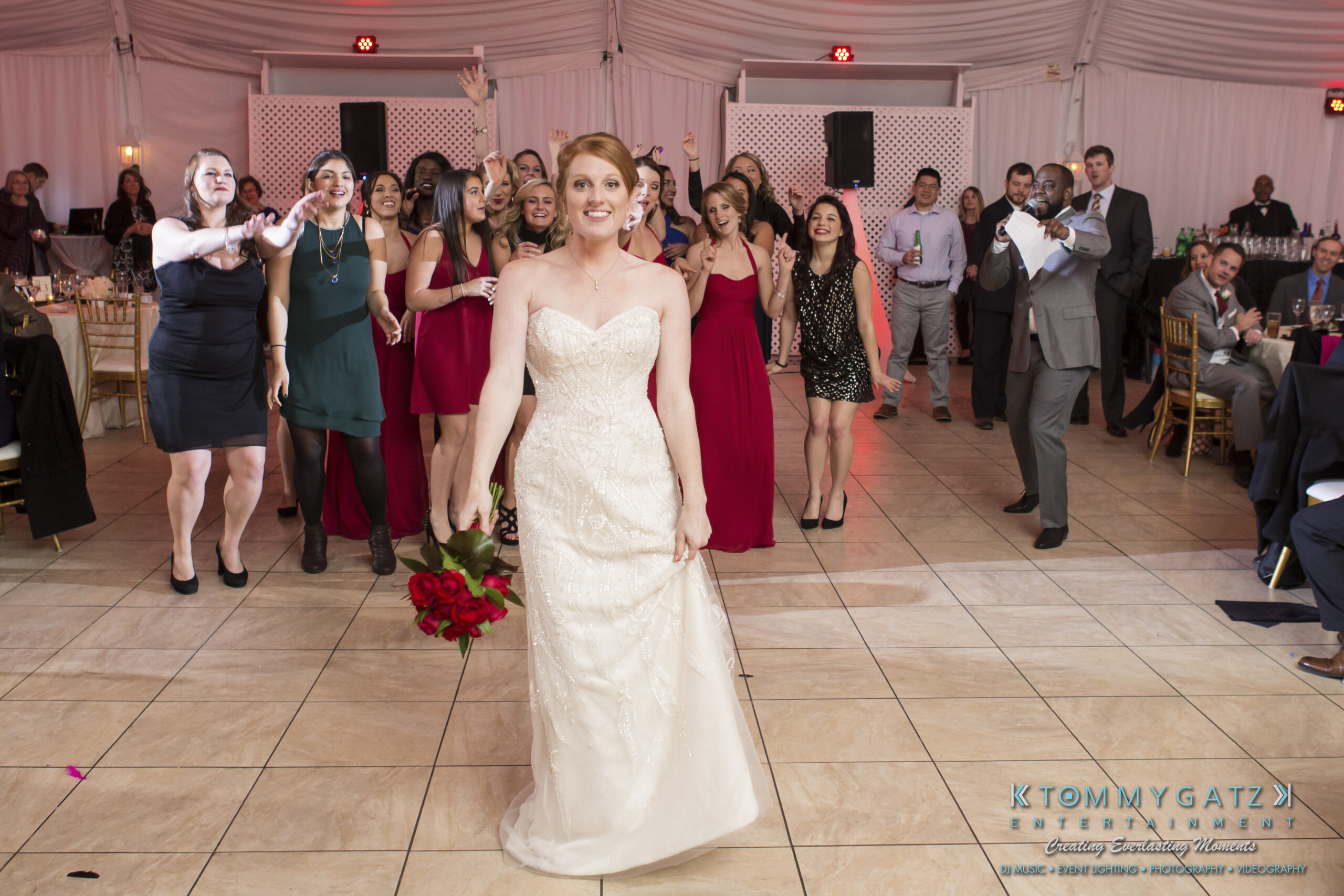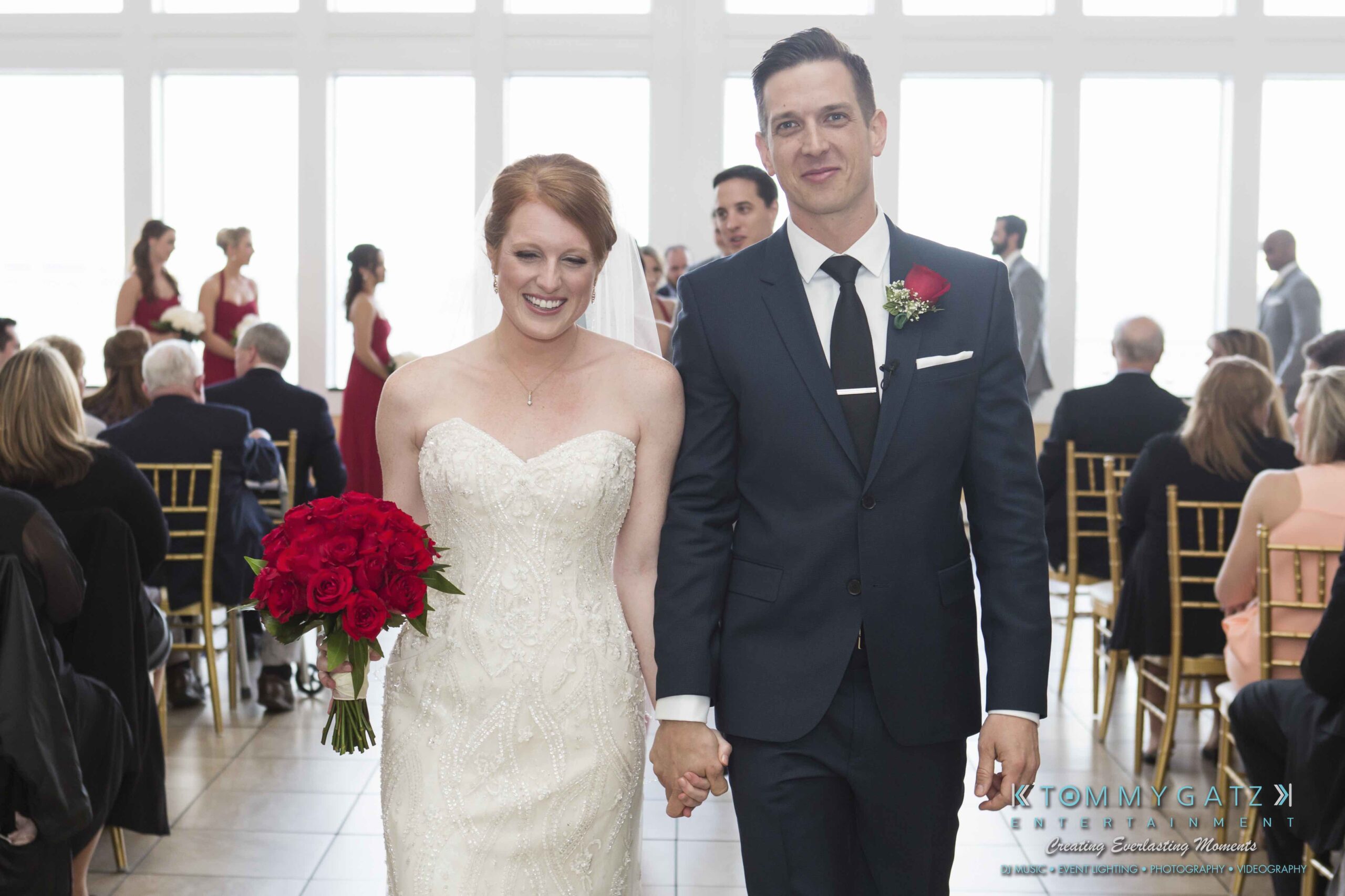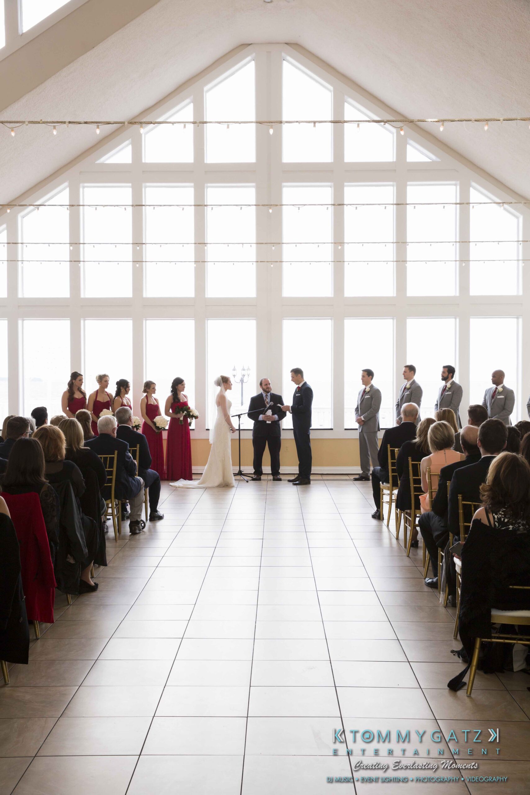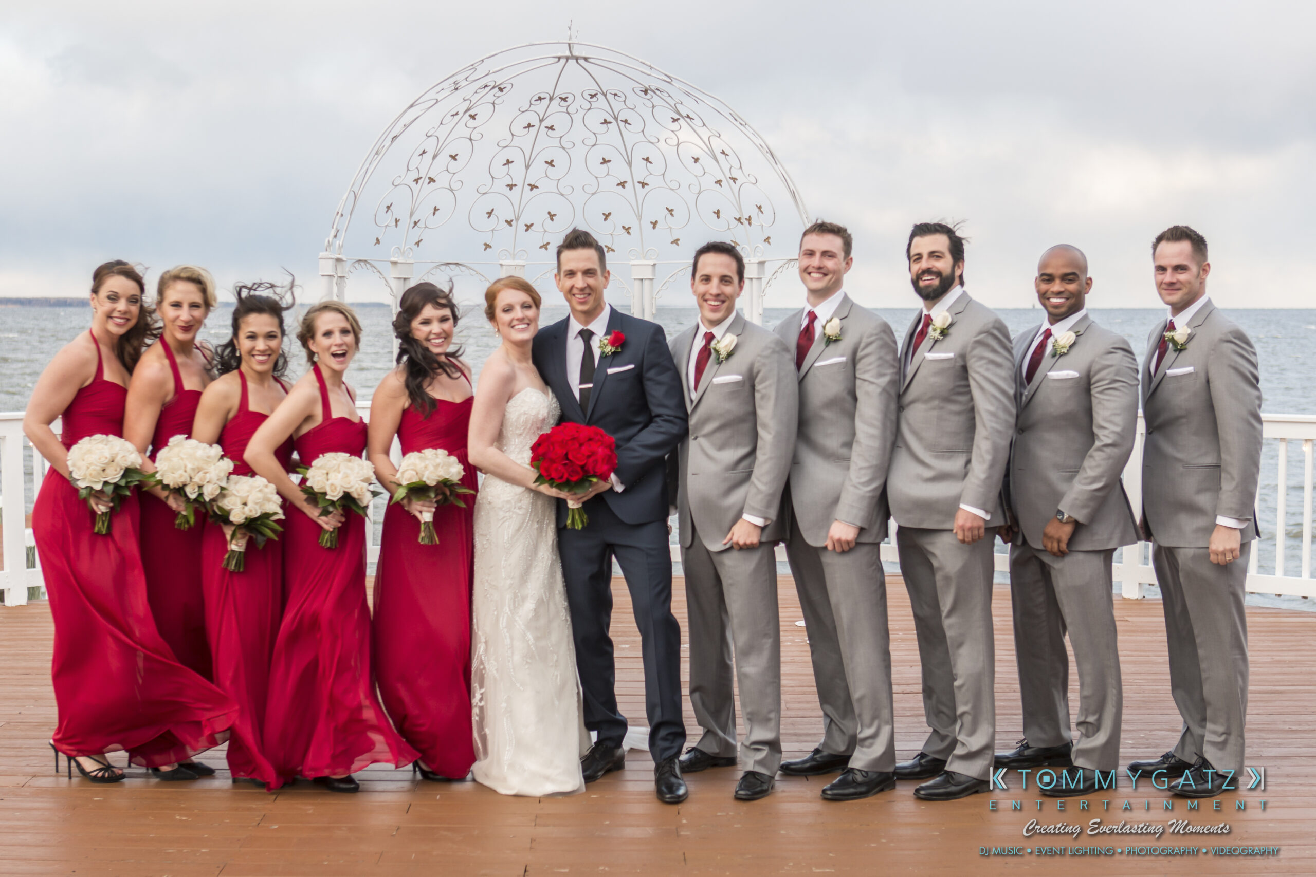 Erika and Michael had a beautiful Valentine’s Day weekend wedding. The Navy helicopter pilot bride and Naval officer groom returned home to Maryland from the west coast to hold their wedding at Celebrations at the Bay. On one of the coldest days of the year, this couple braved the elements to create one of the most memorable weddings we have ever been a part of. Tommy Gatz Entertainment provided the DJ music, lighting, professional photography, photo booth, cinematography, and day of coordination for their amazingly romantic wedding on the water.