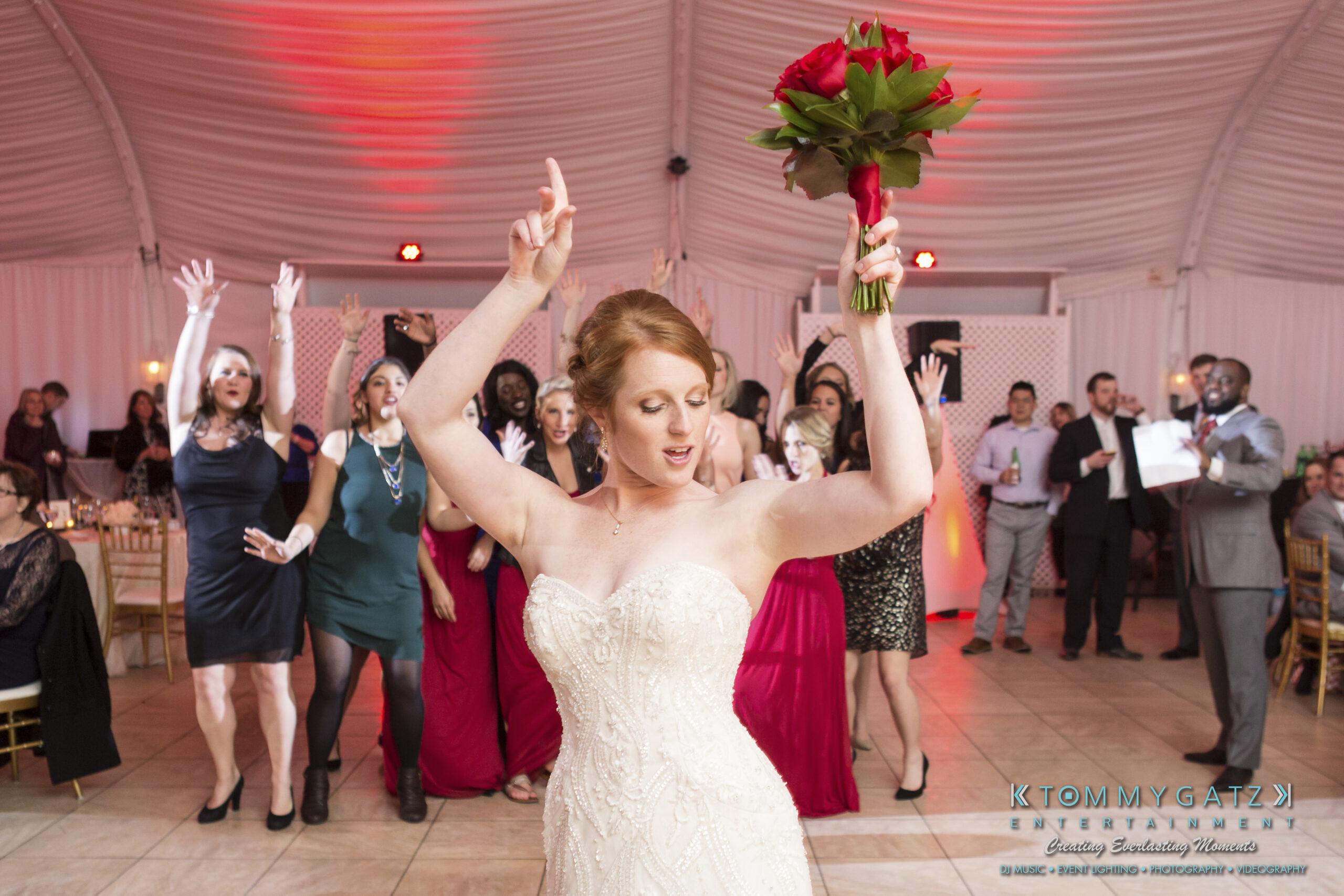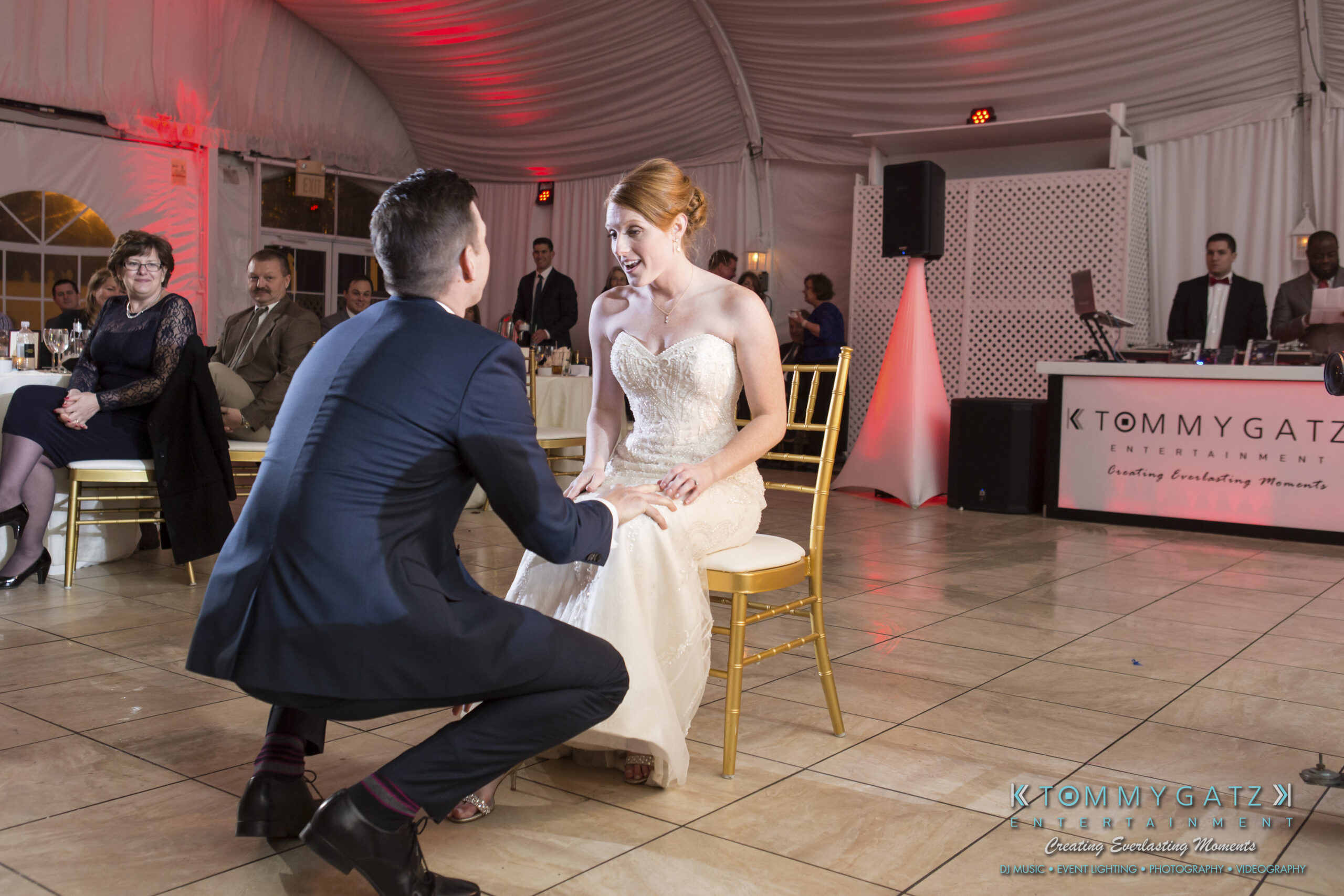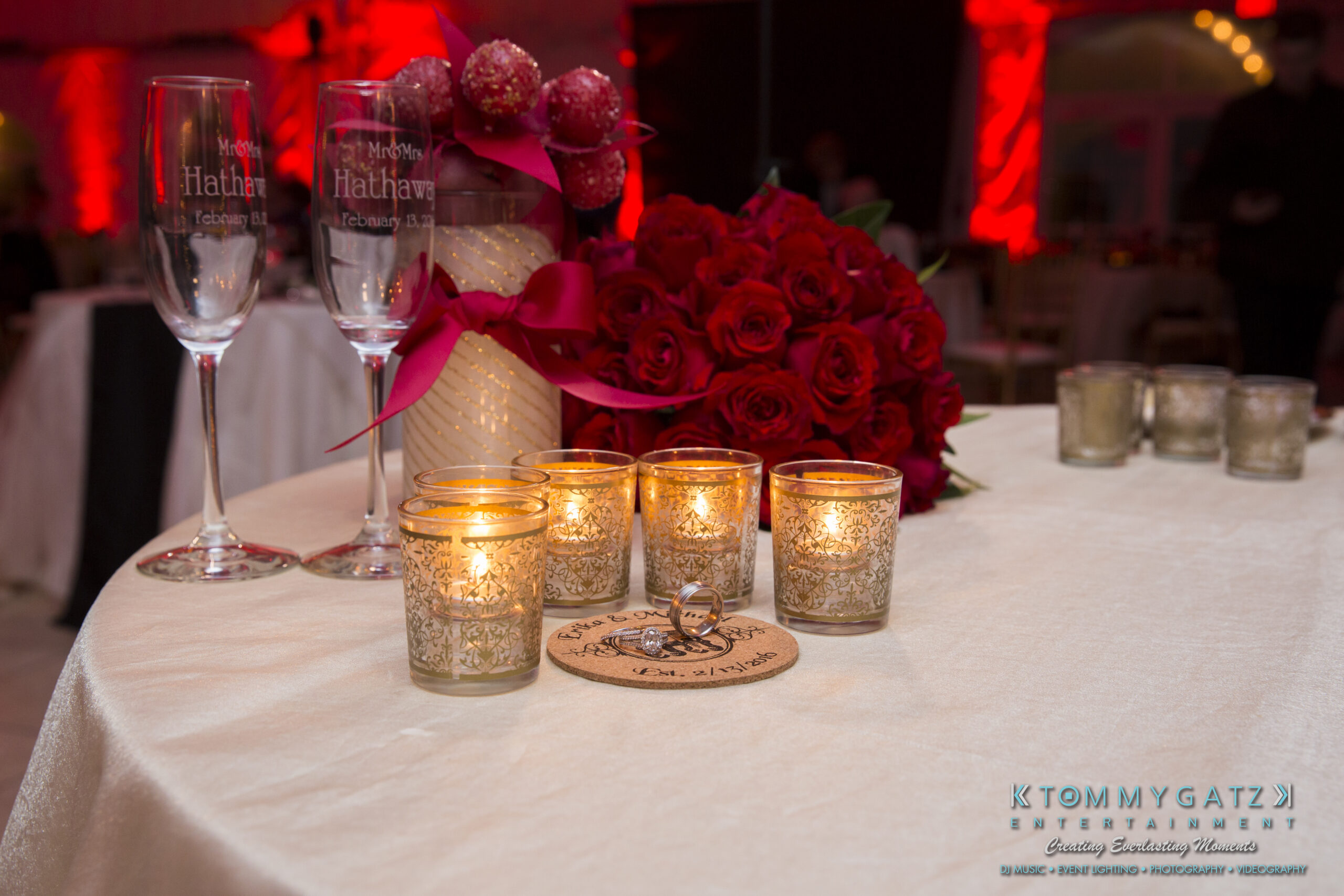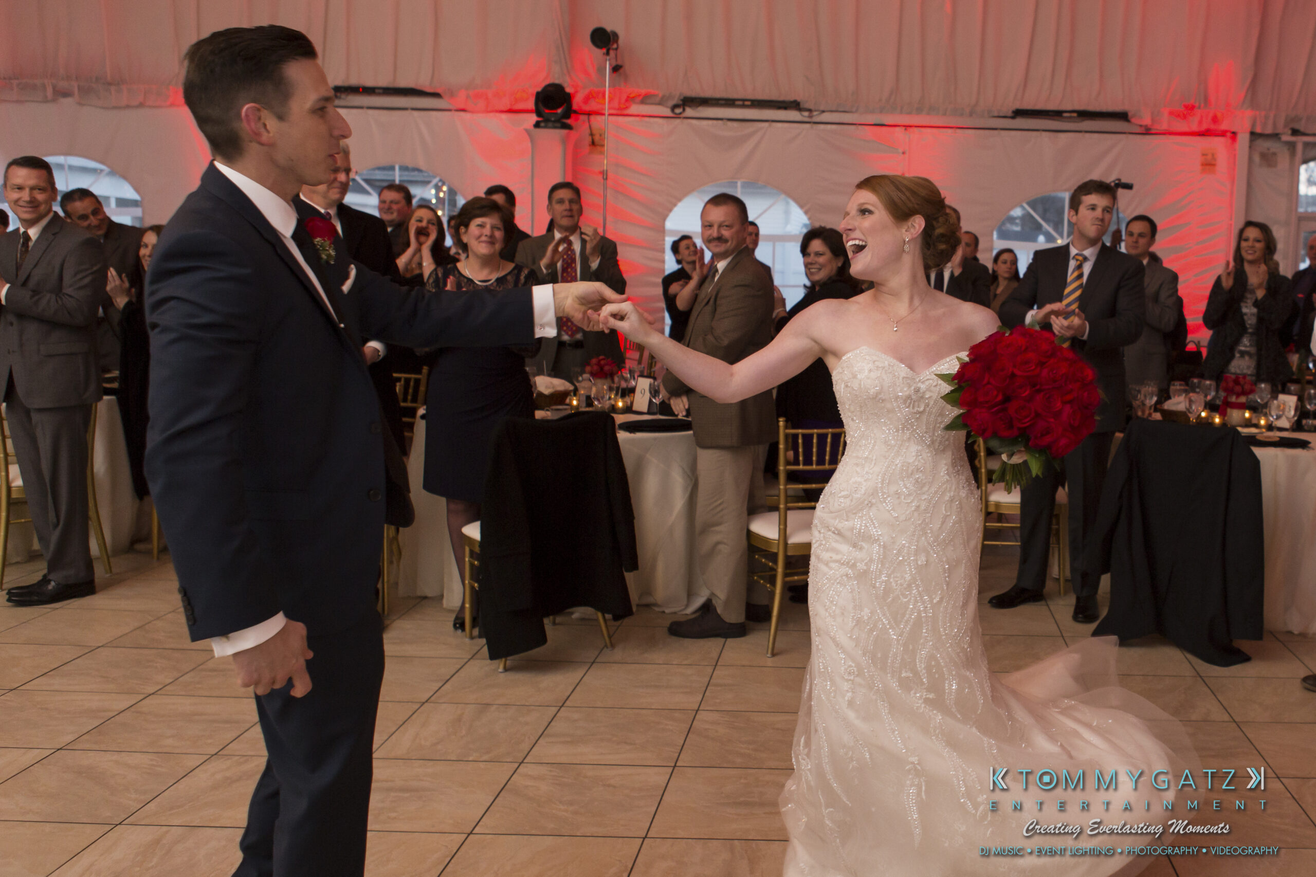 Erika and Michael had a beautiful Valentine’s Day weekend wedding. The Navy helicopter pilot bride and Naval officer groom returned home to Maryland from the west coast to hold their wedding at Celebrations at the Bay. On one of the coldest days of the year, this couple braved the elements to create one of the most memorable weddings we have ever been a part of. Tommy Gatz Entertainment provided the DJ music, lighting, professional photography, photo booth, cinematography, and day of coordination for their amazingly romantic wedding on the water.