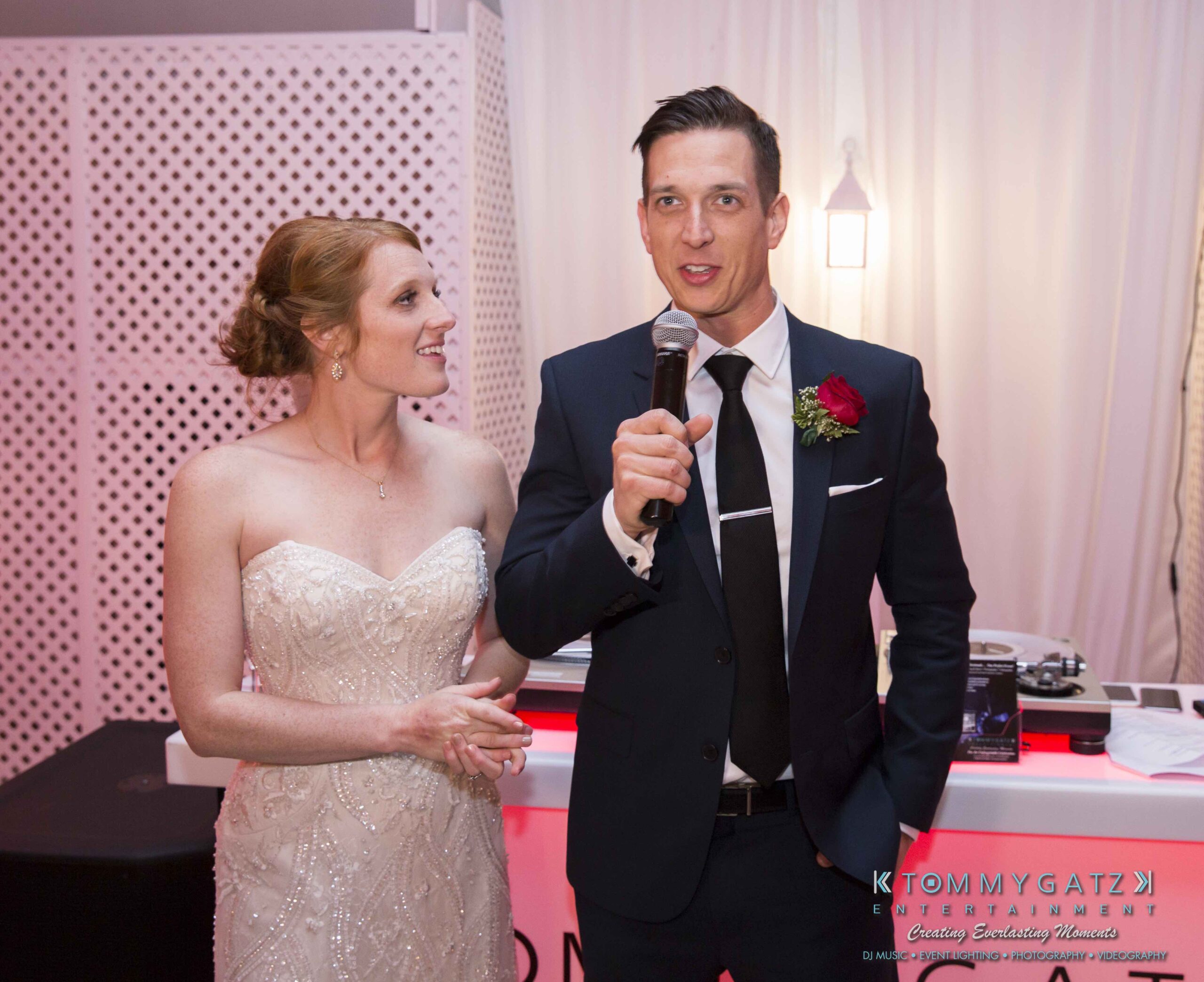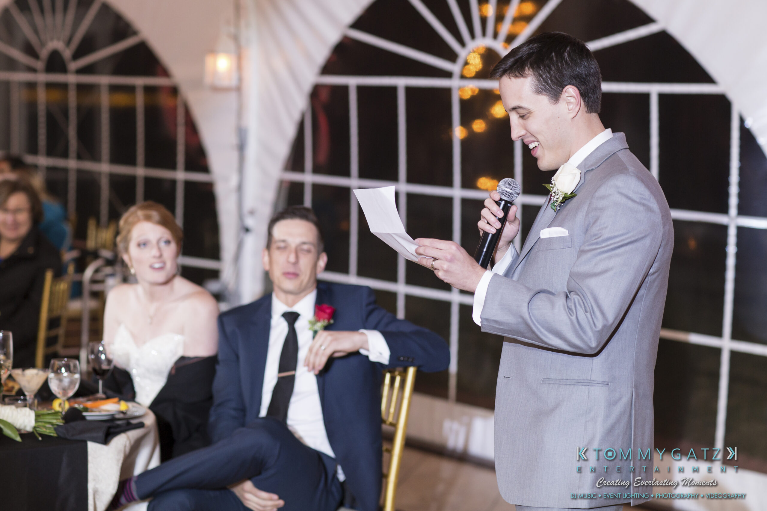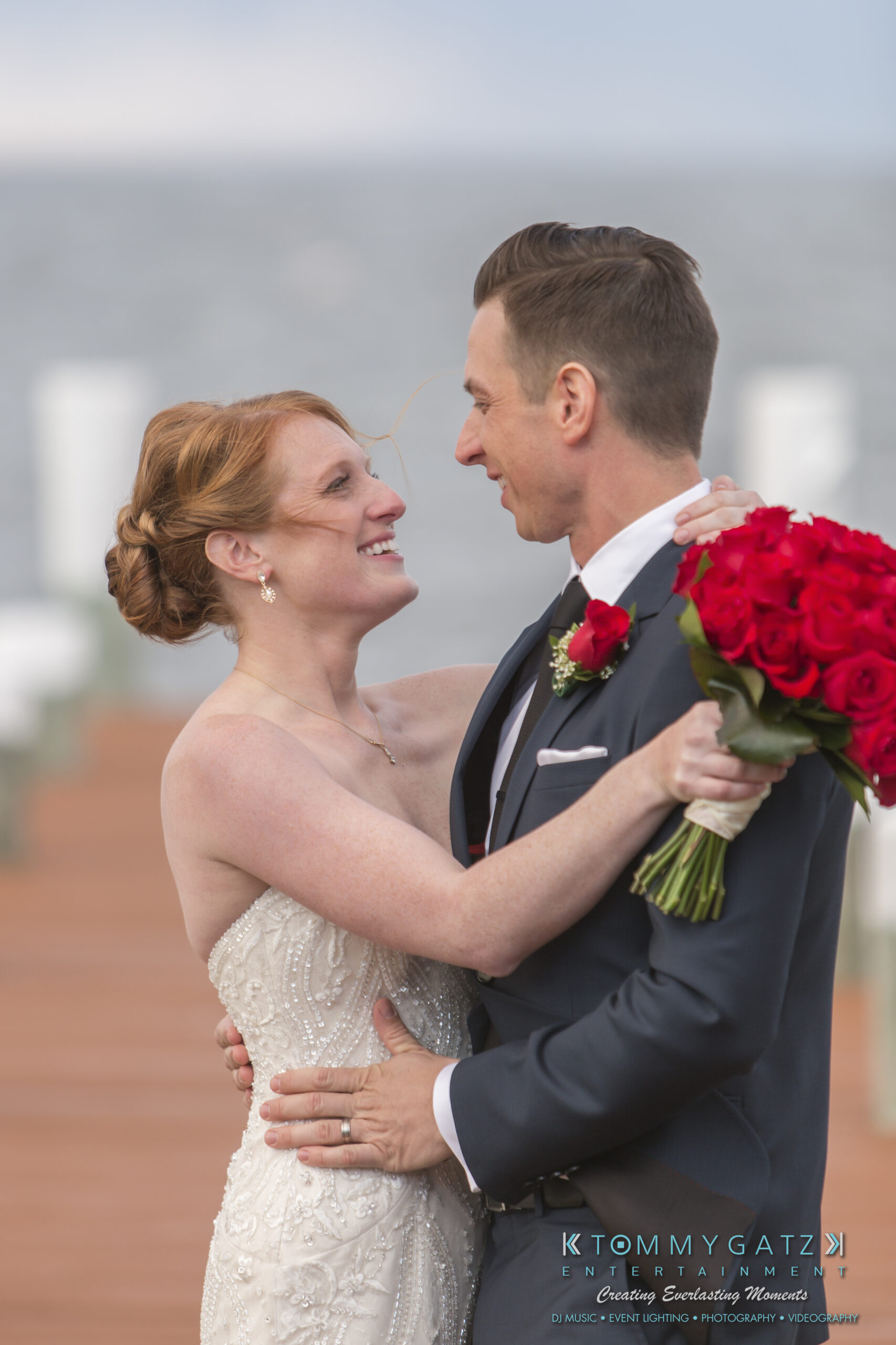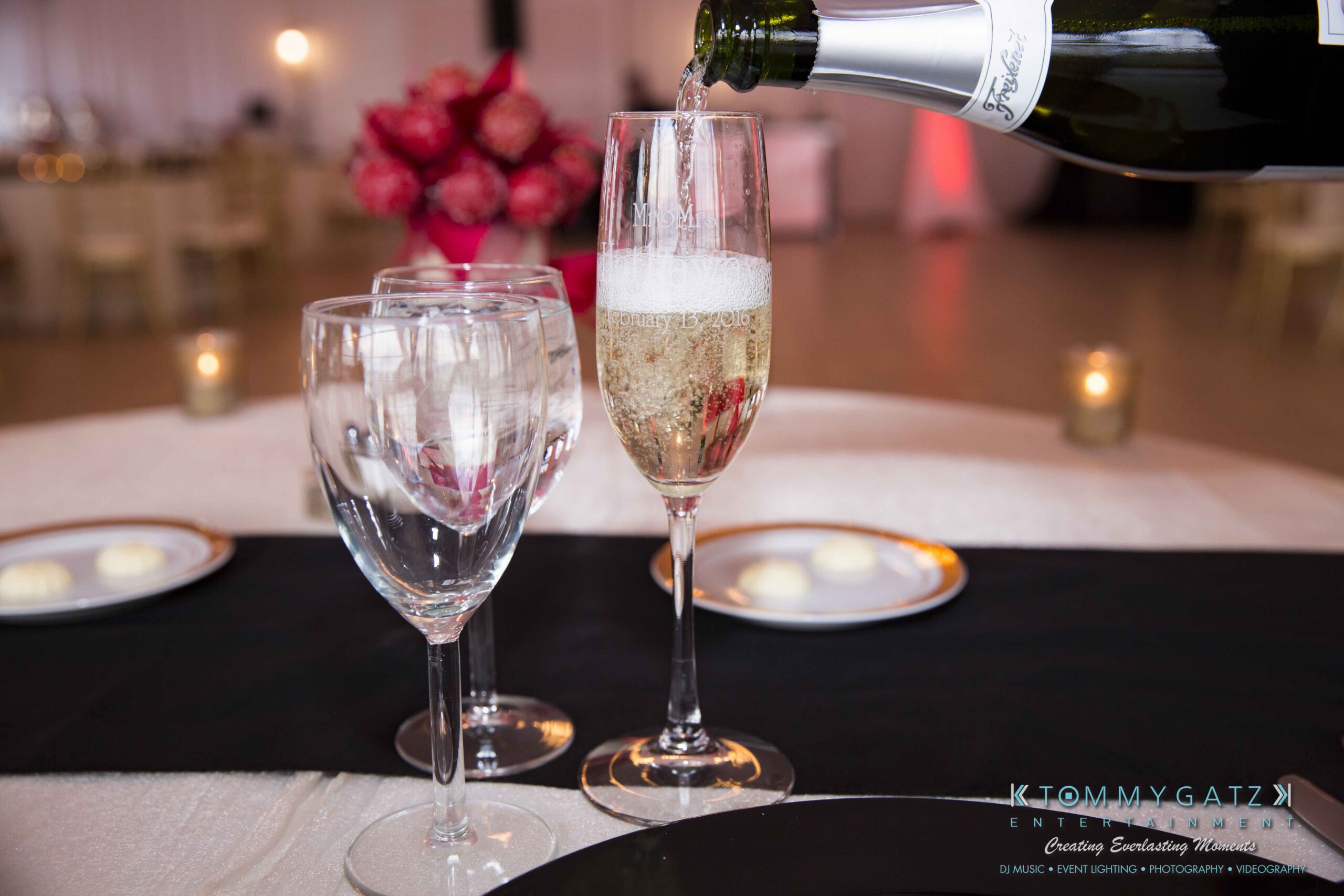 Erika and Michael had a beautiful Valentine’s Day weekend wedding. The Navy helicopter pilot bride and Naval officer groom returned home to Maryland from the west coast to hold their wedding at Celebrations at the Bay. On one of the coldest days of the year, this couple braved the elements to create one of the most memorable weddings we have ever been a part of. Tommy Gatz Entertainment provided the DJ music, lighting, professional photography, photo booth, cinematography, and day of coordination for their amazingly romantic wedding on the water.